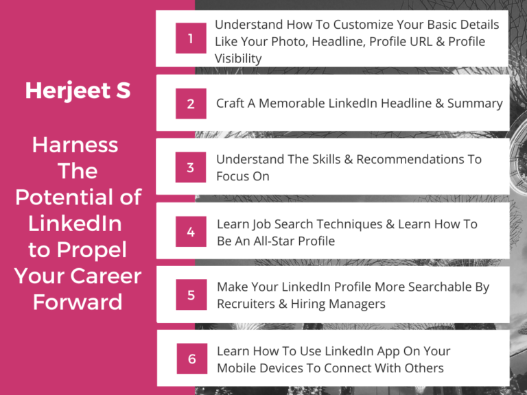 This 1-day workshop aims to equip learners with the tips & tricks on making use of LinkedIn to get more views & messages from recruiters & head-hunters.